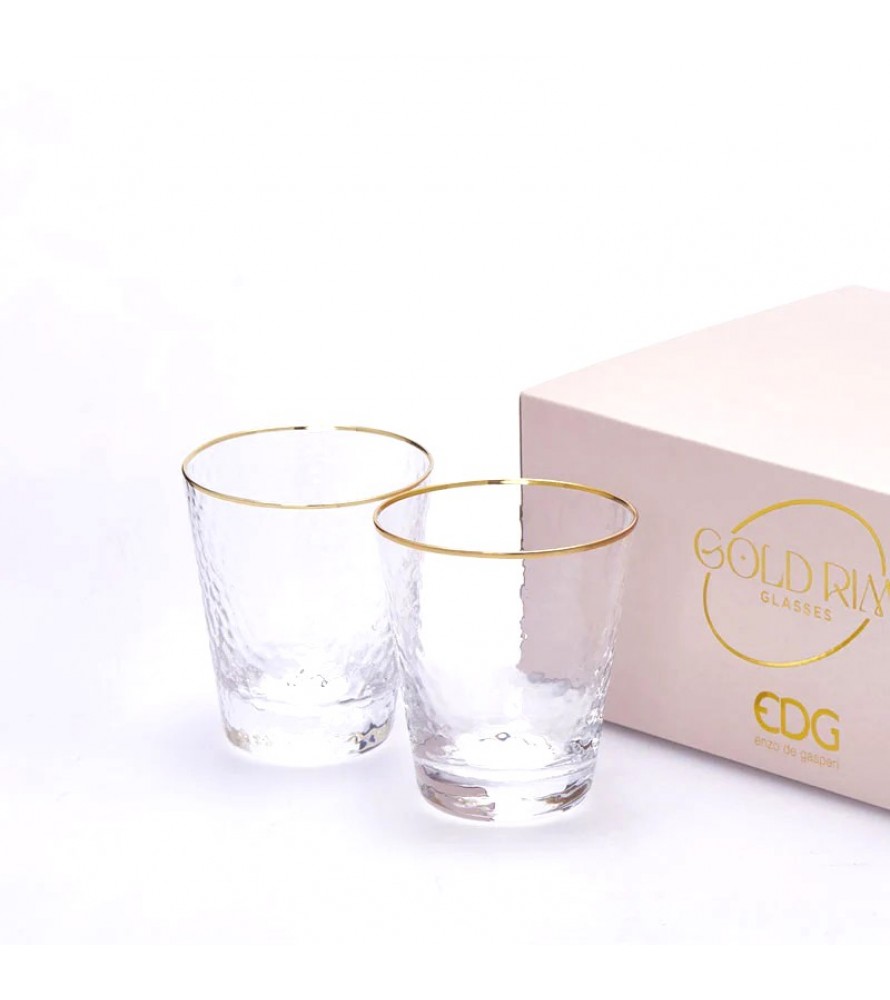 Ogni bicchiere è un capolavoro di design, caratterizzato da un bordo dorato che aggiunge un tocco di classe senza tempo.