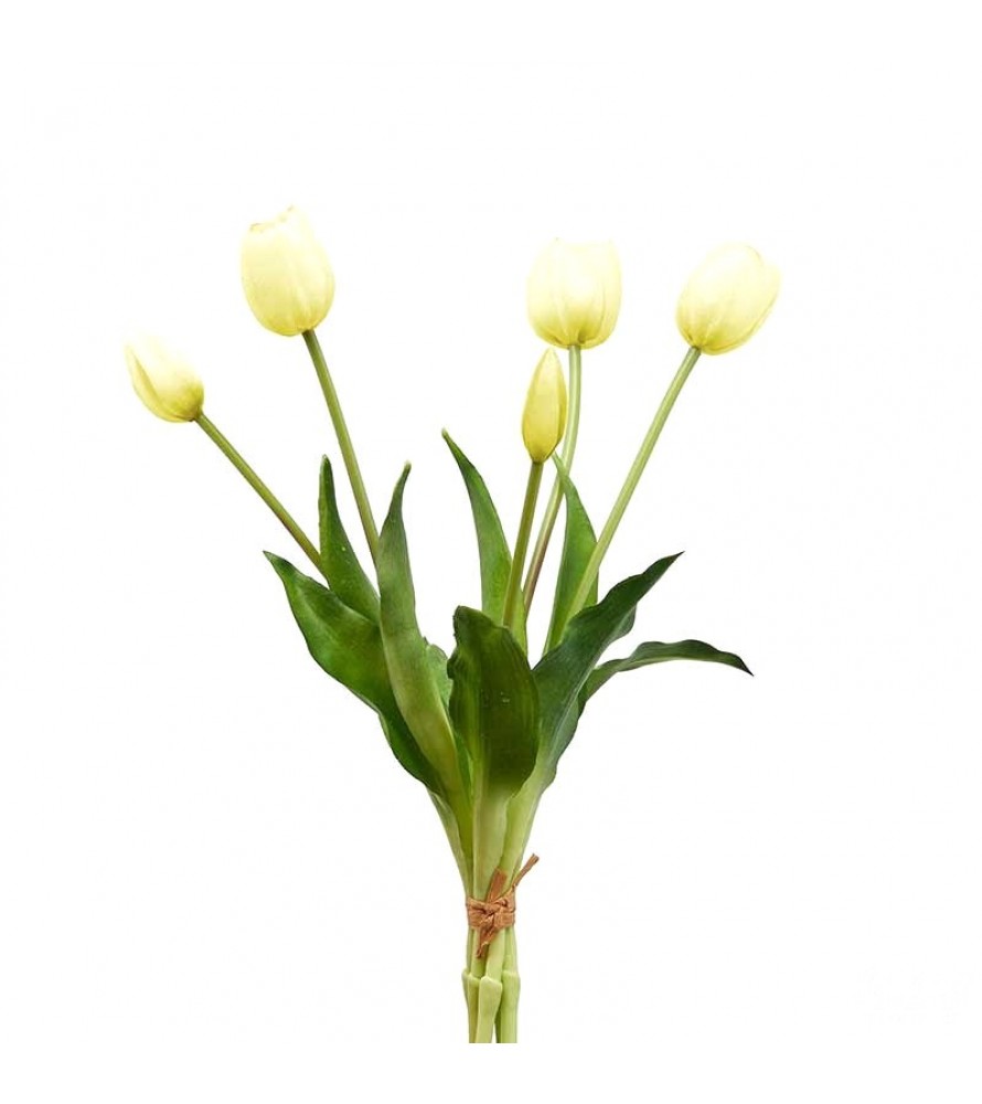 Mazzo di Tulipani Artificiali composto da 5 fiori e foglie.