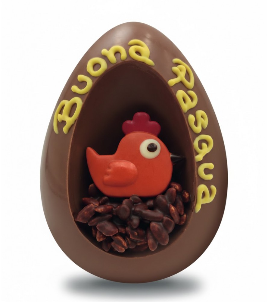 L'UOVO FANTASY "BUONA PASQUA" SLITTI (180g) è un piccolo capolavoro di cioccolateria artigianale, interamente realizzato e decorato a mano per celebrare l'allegria della Pasqua. Questo uovo di finissimo cioccolato al latte, con il suo delizioso pulcino e il nido di pepite croccanti, incanta grandi e piccini, rendendo il momento della scoperta della sorpresa ancora più magico.