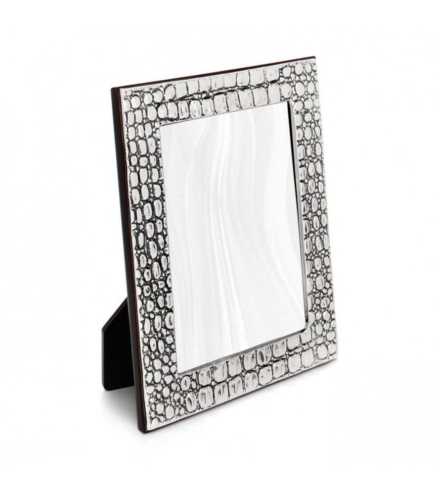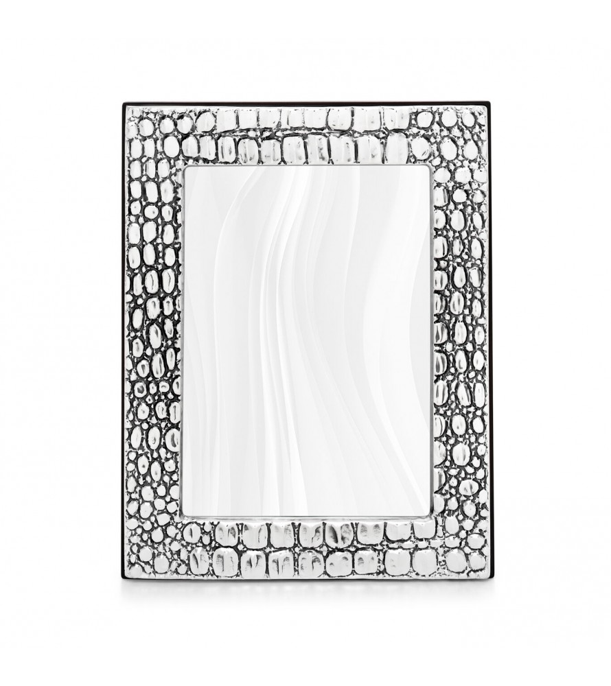 Una bella cornice in lastra di argento, con luminosa texture coccodrillo, per ospitare i nostri frammenti di vita e le immagini che ci stanno più a cuore.