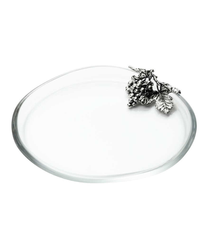 Vassoio in vetro con applicazione in Bronzobianco - Collezione Uva - Confezionato in scatola regalo.