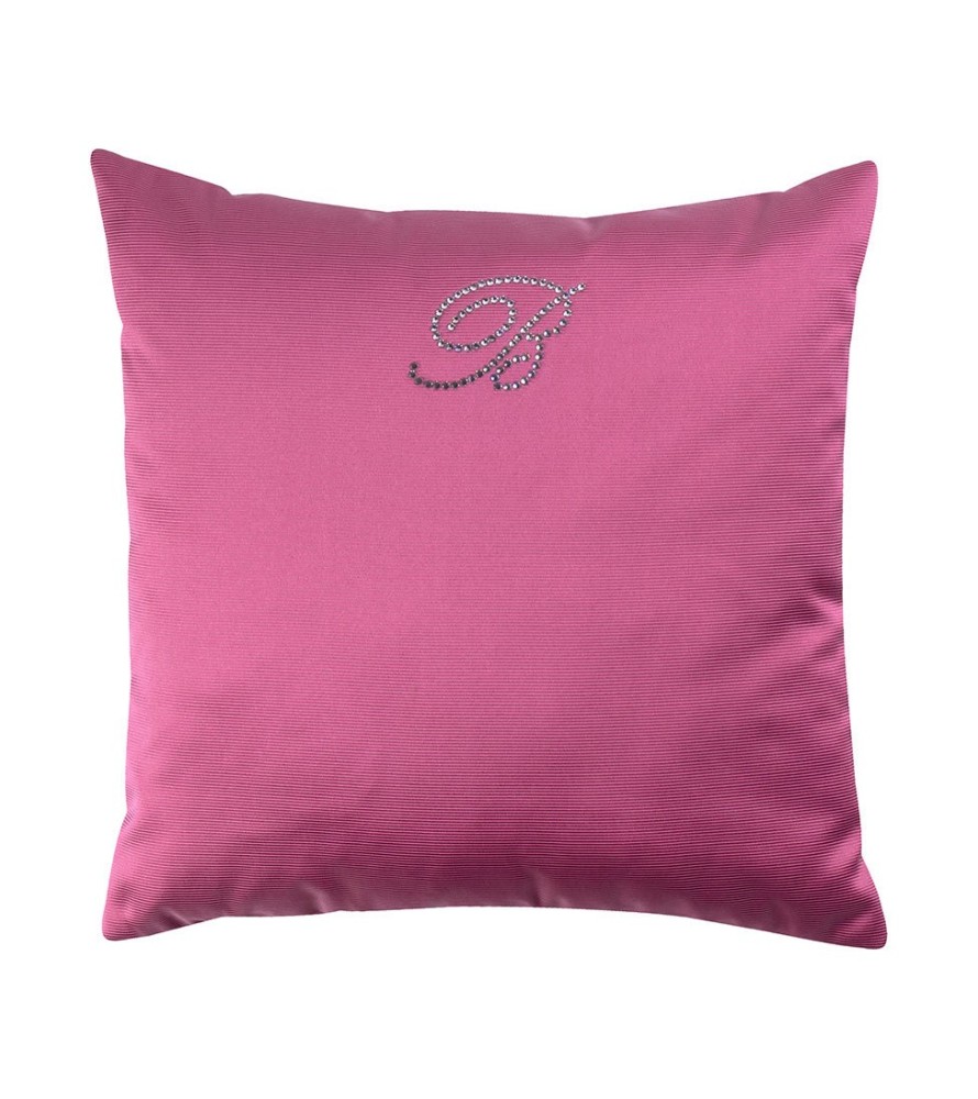 Cuscino decorativo in tessuto Ottoman in tinta unita con SCRITTA INTERA Blumarine in cristalli Swarovski. Confezionato in busta. Imbottitura inclusa.