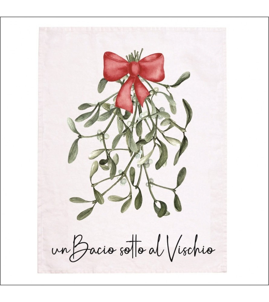 Canovaccio in lino con decoro Un bacio sotto al Vischio.