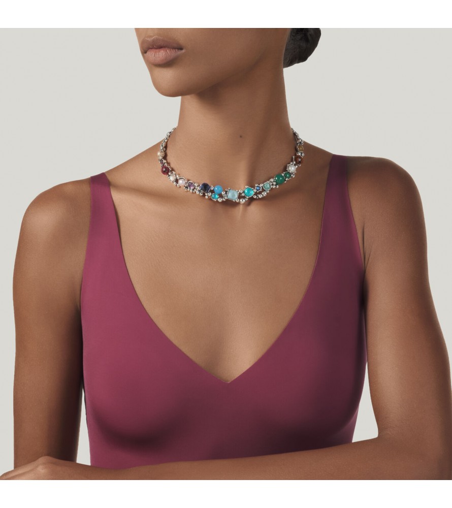UN ARCOBALENO DI SAPIENZA ARTIGIANALE. La Collana Cocktail di Giovanni Raspini è una vera icona che pone il colore e la materia al centro del design. Un gioiello di grande impatto, dove l'argento brunito dialoga con un mosaico di pietre naturali, gemme e perle d'acqua dolce. Ogni elemento è selezionato per creare un'armonia cromatica senza precedenti, nata da una profonda ricerca estetica per illuminare con uno stile inconfondibile ogni tuo outfit. Spedizione gratuita inclusa.