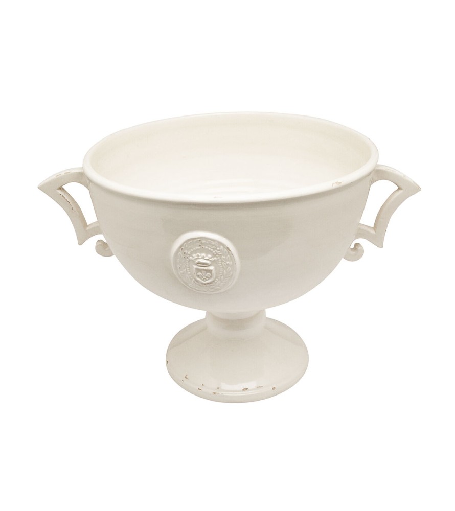 La coppa in ceramica di Virginia Casa con decoro di Stemma in rilievo è un prodotto di alta qualità che presenta una lavorazione unica e raffinata. La lavorazione anticata conferisce alla coppa un aspetto vintage e raffinato,che la rende un oggetto unico e prezioso.