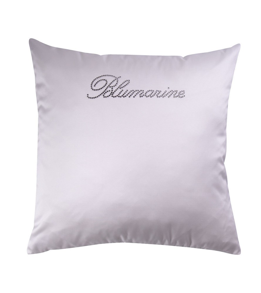 Cuscino decorativo in tessuto Ottoman in tinta unita con SCRITTA INTERA Blumarine in cristalli Swarovski. Confezionato in busta. Imbottitura inclusa.