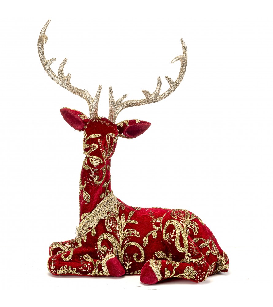 Bellissima Renna decorativa finemente rivestita in tessuto di velluto e decorata con passamanerie e rifinita con eco-pelliccia.Posizionata alla base dell'albero o al centro tavola donerà al tuo allestimento natalizio un tocco elegante e raffinato!