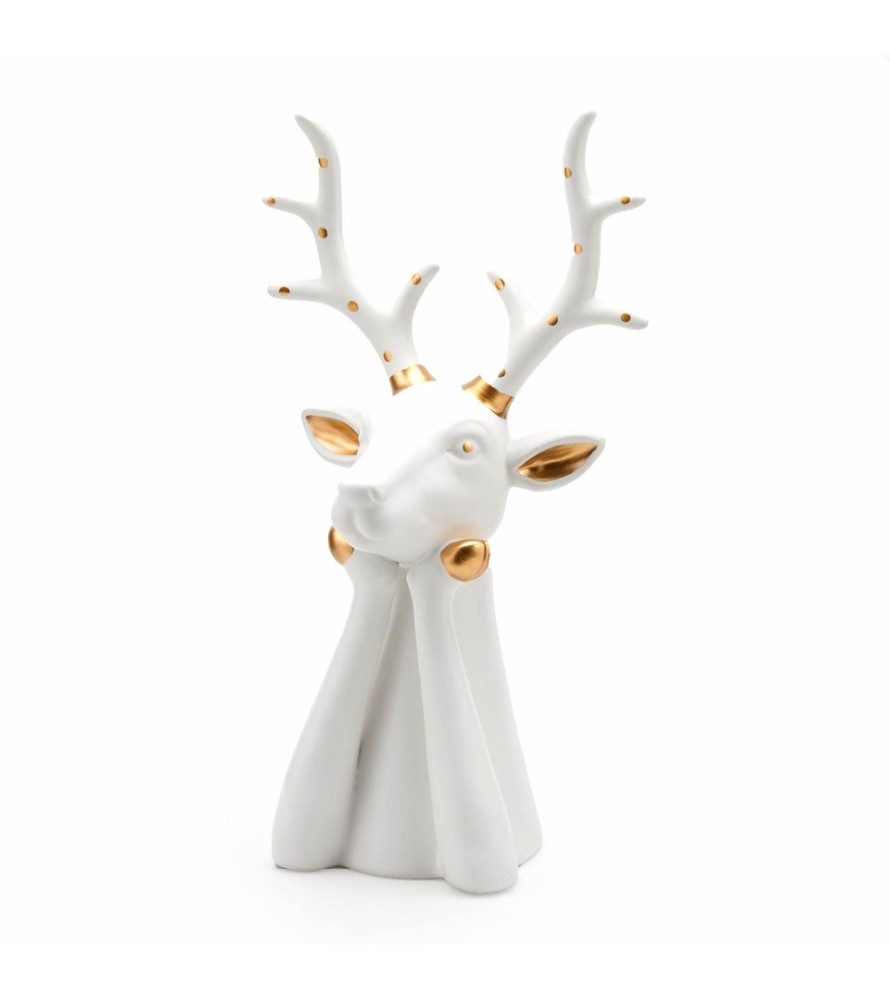 Decorazione Renna da appoggio realizzata in ceramica e dipinta a mano con dettagli in oro.