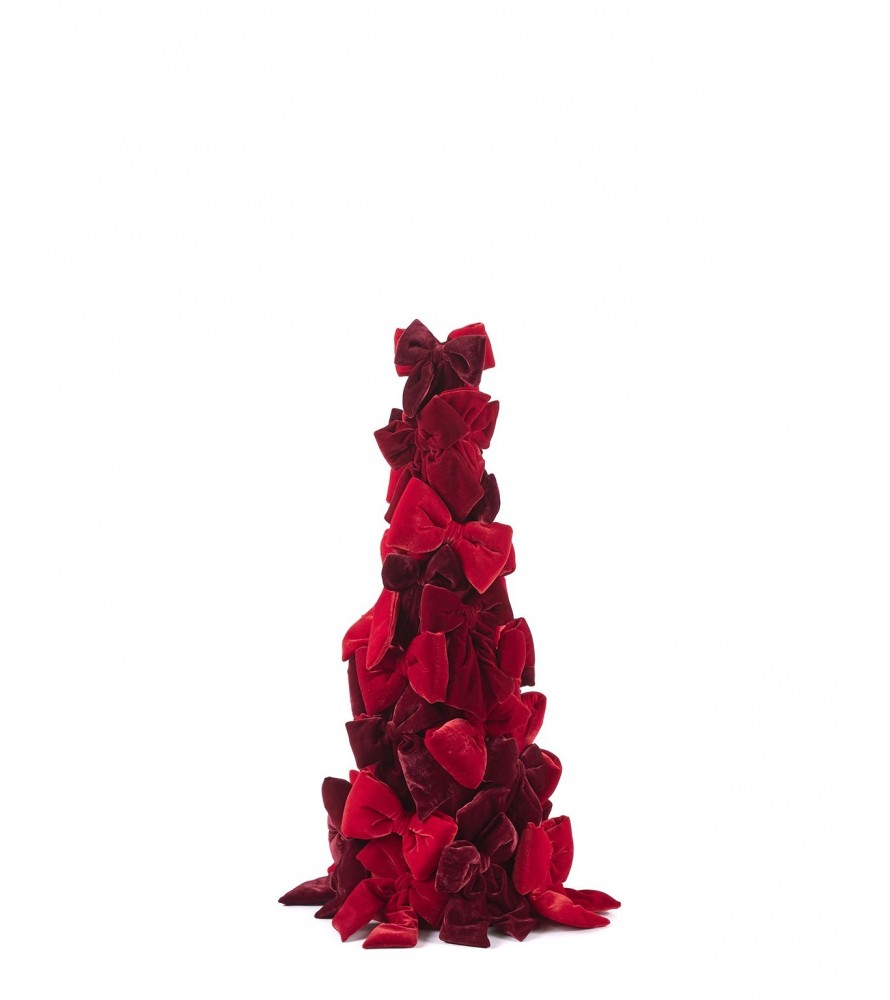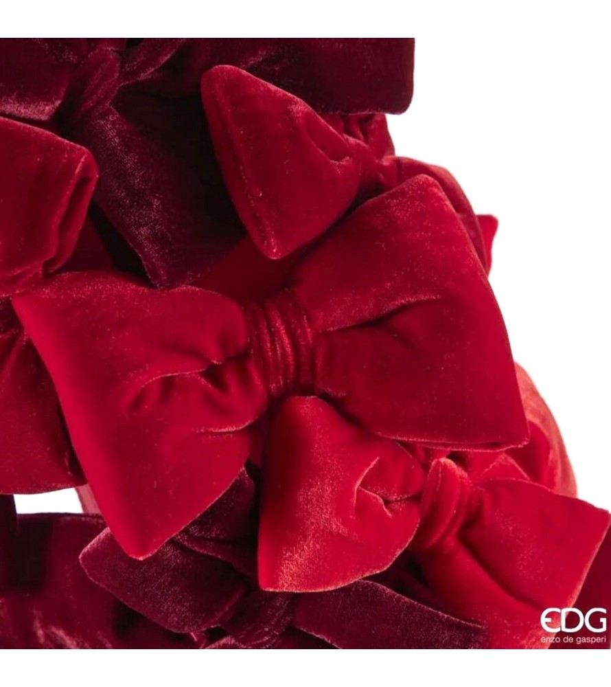 Interamente realizzato con una cascata di fiocchi in velluto in diverse tonalità di rosso, questo decoro crea un gioco di luci e ombre che conferisce profondità e un'atmosfera sontuosa.