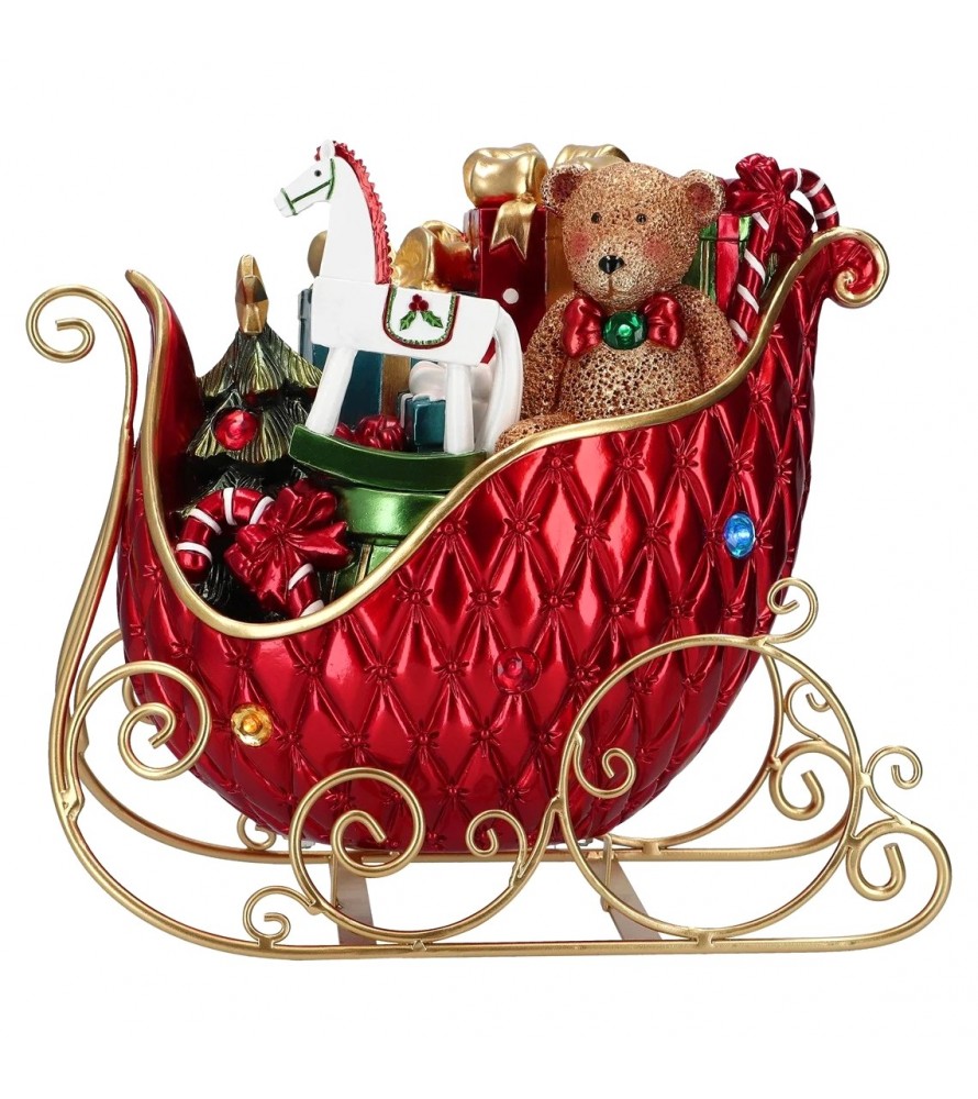 Slitta con giocattoli e regali Rosso e Oro C/Led H43 - Timstor