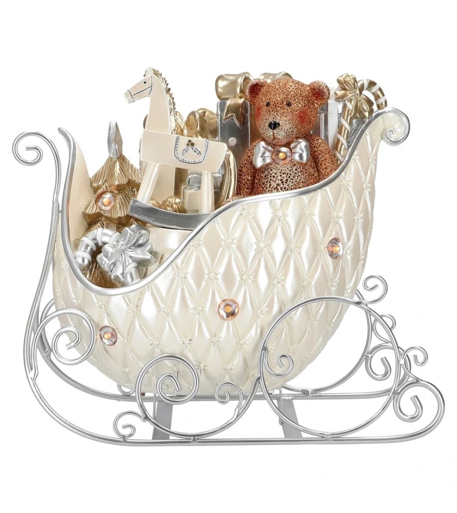Slitta con giocattoli e regali Bianca e Oro C/Led H43 - Timstor