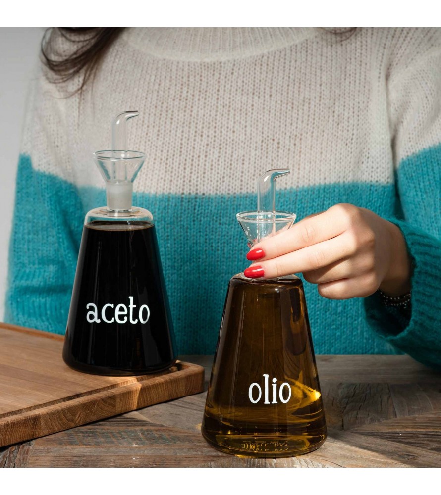 Bottiglia in vetro borosilicato con beccuccio dosatore anti-goccia decoro OLIO
