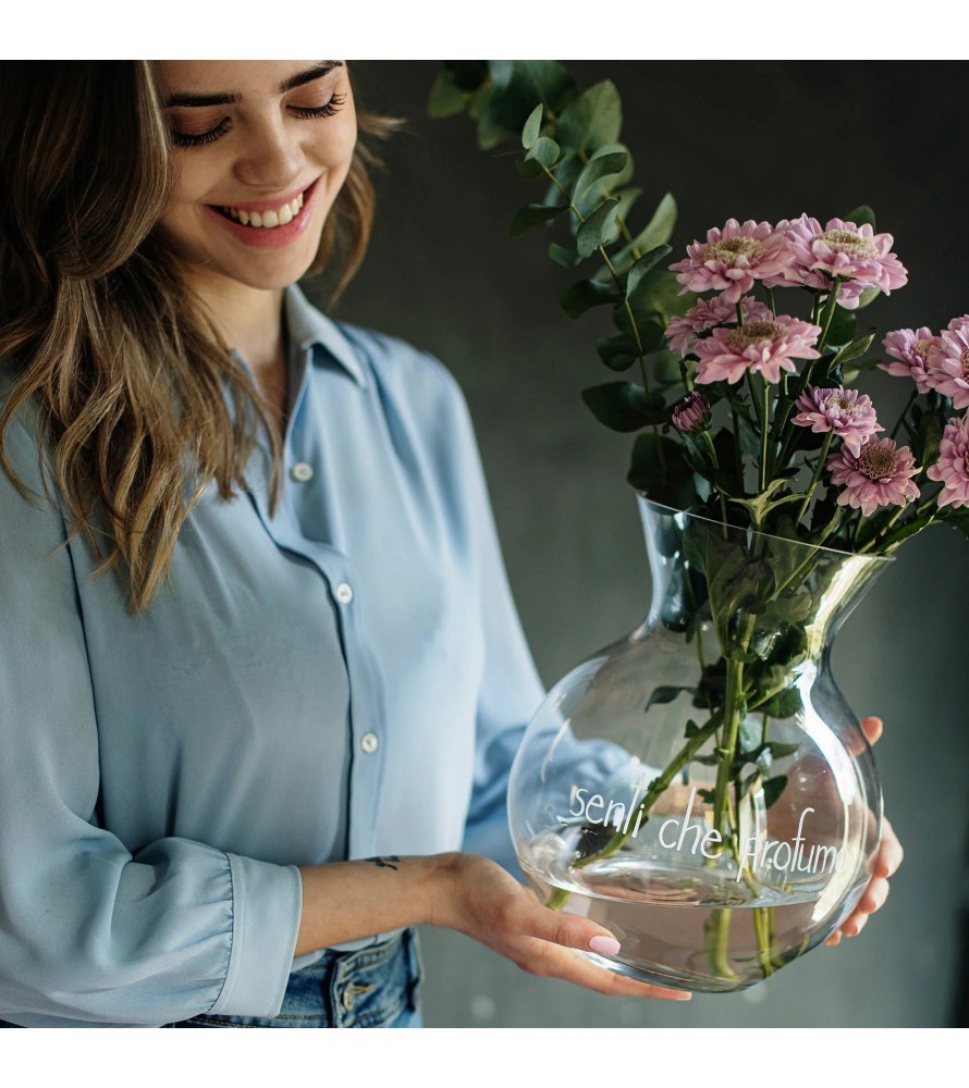 Vaso Portafiori in vetro con decoro SENTI CHE PROFUMO.