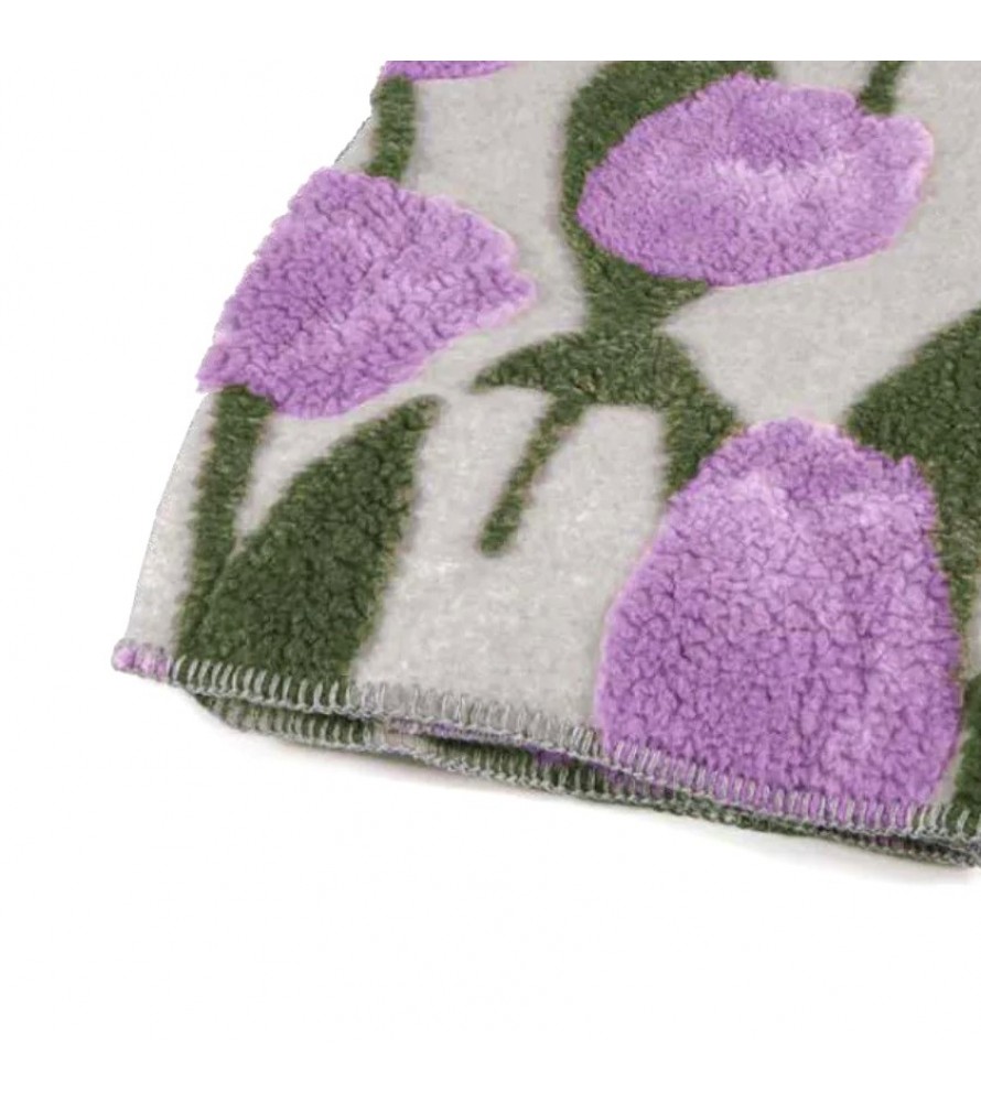 Dal tocco molto caldo e confortevole, il plaid Tulipani è caratterizzato da fiori colorati in rilievo, che creano un bellissimo contrasto con la tinta unita della lana. La lavorazione conferisce al tessuto una particolare texture, che permettere di realizzare fantasie e torsioni leggermente in rilievo. Impreziosito da un caratteristico punto a cavallo che rifinisce tutto il perimetro del plaid.