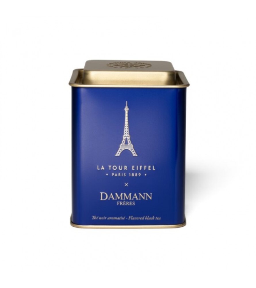 L'iconica tin Dammann Frères abbellita con colori esclusivi, riflessi blu profondi, metallici e bagliori d'oro che offrono un'ode all'elegante silhouette della Torre Eiffel.