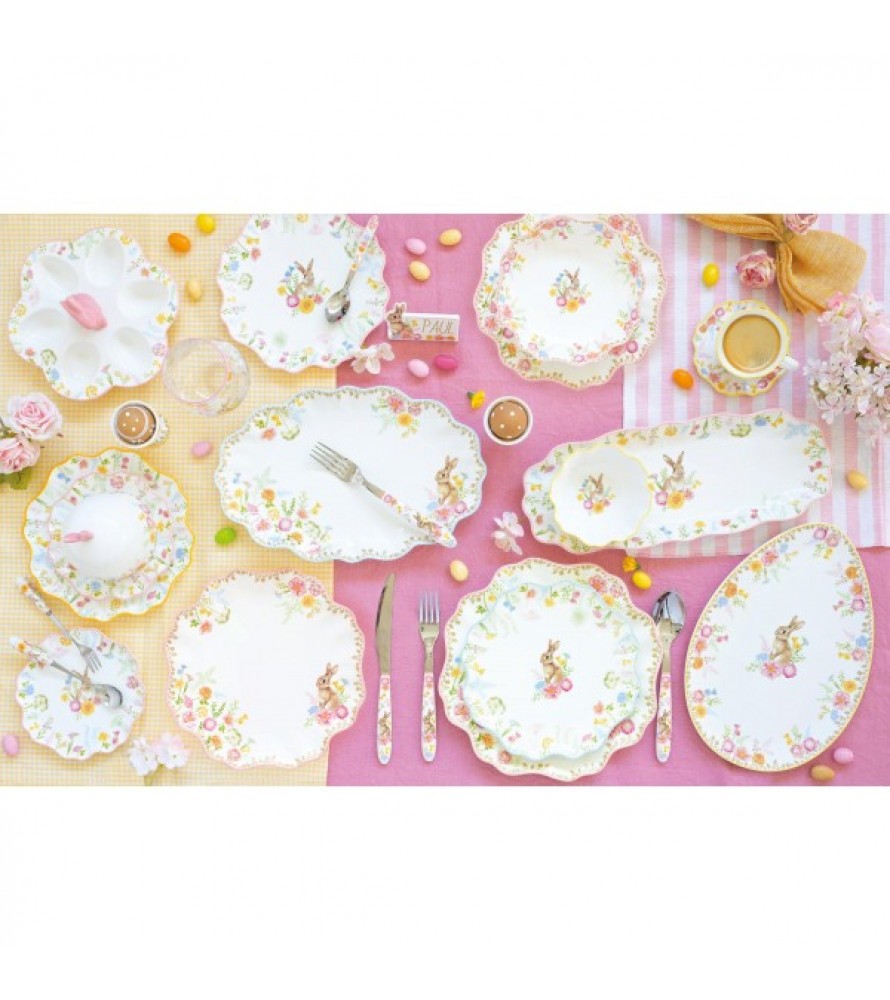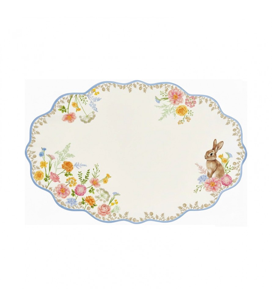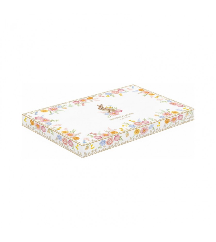 IL PIATTO DA PORTATA TRES JOLIE EASY LIFE è l'elemento ideale per chi ama servire con stile e personalità. Realizzato in pregiata porcellana, questo vassoio da 32x21 cm offre un'ampia superficie decorata con i dolci coniglietti e la flora primaverile tipici della collezione. La sua linea armoniosa ed elegante si sposa perfettamente con il romanticismo dei decori, creando un equilibrio perfetto tra funzionalità e bellezza ornamentale.
