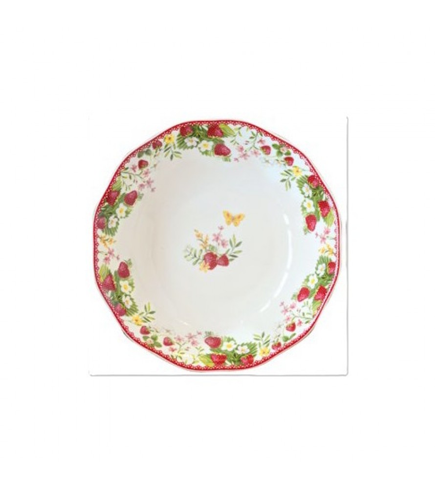 IL SERVIZIO PIATTI 18 PEZZI JARDIN DES FRAISES DI EASY LIFE celebra la freschezza e la vivacità dei frutti di bosco. Realizzato in pregiata porcellana, questo set si distingue per i suoi decori finemente illustrati che ritraggono fragoline rosse e fiori delicati, incorniciati da bordure eleganti. Ogni piatto è pensato per trasformare il pranzo quotidiano o la cena con gli amici in un momento di autentica gioia visiva, portando l'incanto di un giardino estivo direttamente sulla tua tavola.