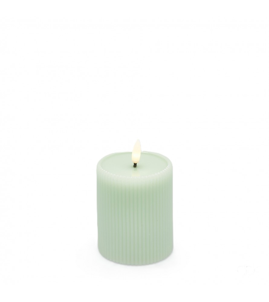 LA CANDELA LED LOUNGE DI ENZO DE GASPERI unisce il fascino intramontabile della luce tremolante alla praticità della tecnologia moderna. Inserita in un elegante cilindro verde salvia, la fiamma LED a luce bianca calda crea riflessi suggestivi che donano profondità e calore a ogni ambiente. Perfetta per chi cerca un'eleganza senza uguali senza i rischi della fiamma libera, questa candela è un accessorio versatile per matrimoni, eventi o cene romantiche.