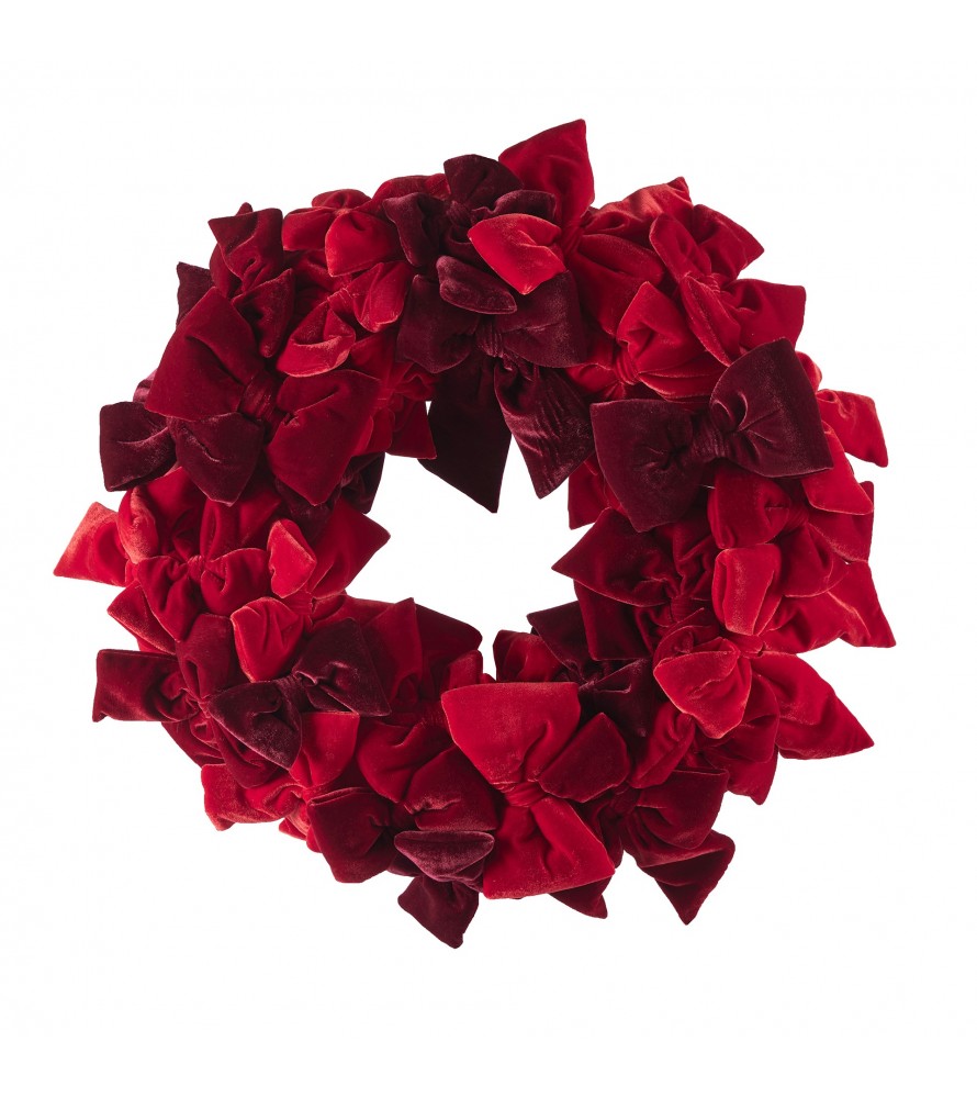 Con un imponente diametro di 60 cm, non passerà di certo inosservata.La corona è interamente composta da una moltitudine di morbidi fiocchi in velluto, lavorati in diverse tonalità di rosso, che creano un effetto tridimensionale e compatto di grande impatto visivo.