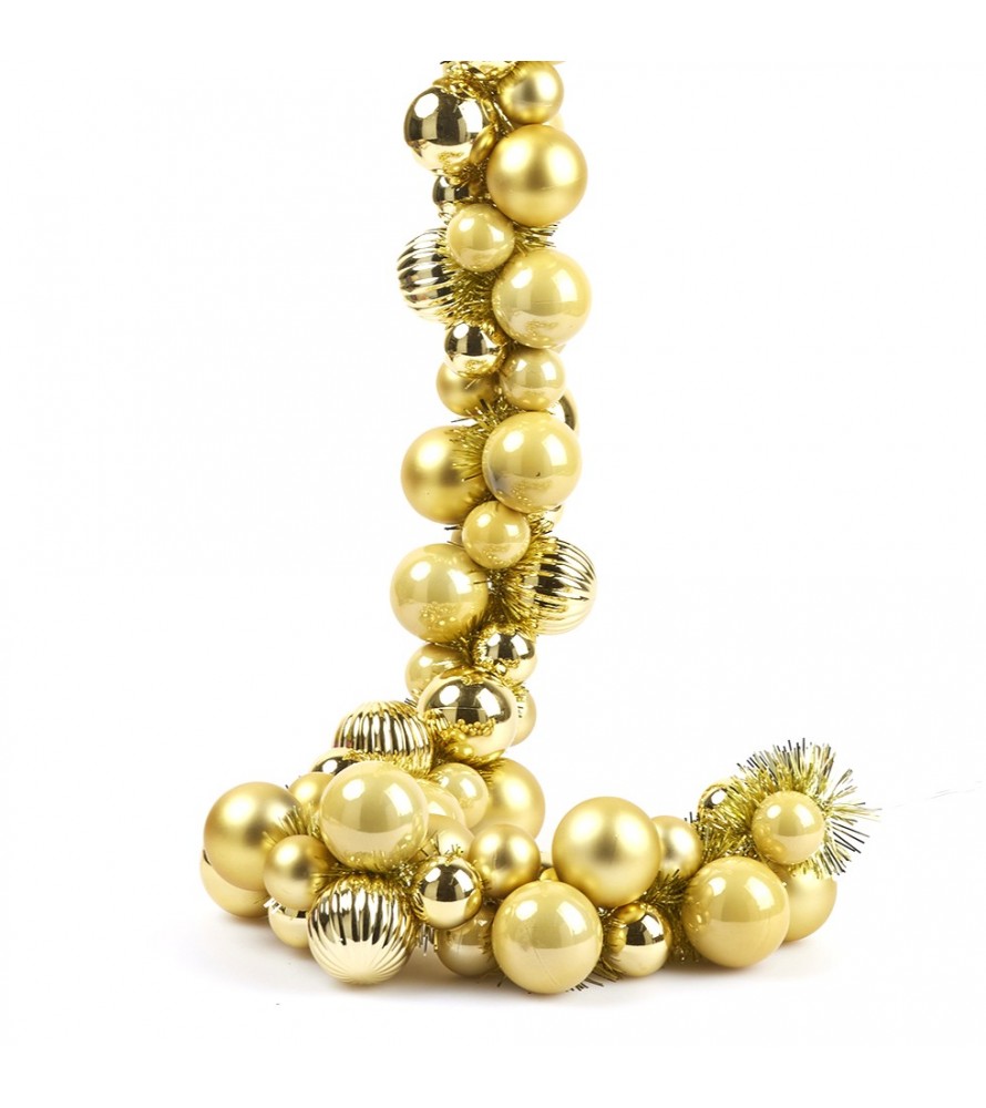 Il festone è composto da ben 100 palline in plastica di diverse dimensioni, tutte rigorosamente in un mix di tonalità e finiture oro. Questa varietà crea un effetto visivo dinamico e sofisticato: troverai palline lisce e lucide, altre con finitura opaca, e alcune con un design a righe o a nido d'ape, che catturano e riflettono la luce in modo unico.