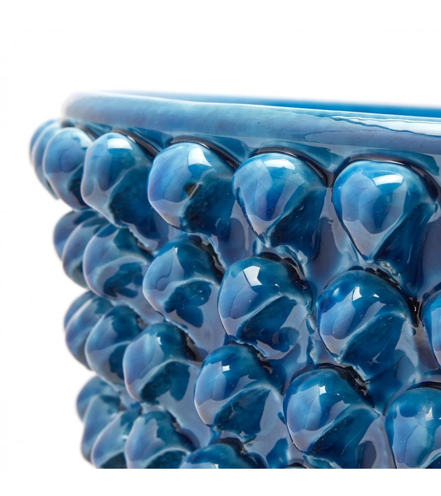 Vaso in ceramica waterproof decorato in rilievo realizzato a mano.Il vaso presenta un motivo a pigna con piede, simbolo di abbondanza e prosperità, realizzato con grande attenzione ai dettagli. Un oggetto home decor originale, che dona colore ed eleganza agli ambienti della tua casa. Perfetto per essere utilizzato come vaso porta fiori e piante, o anche semplicemente lasciandolo libero in tutta la sua bellezza.