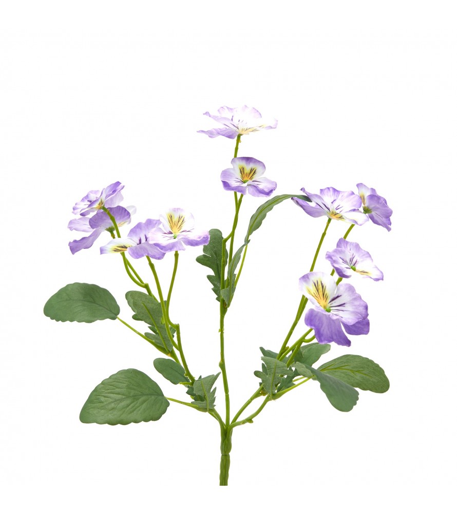 Cespuglio Artificiale di Pansè o Violetta del Pensiero composto da 5 gruppi di fiori e foglie.