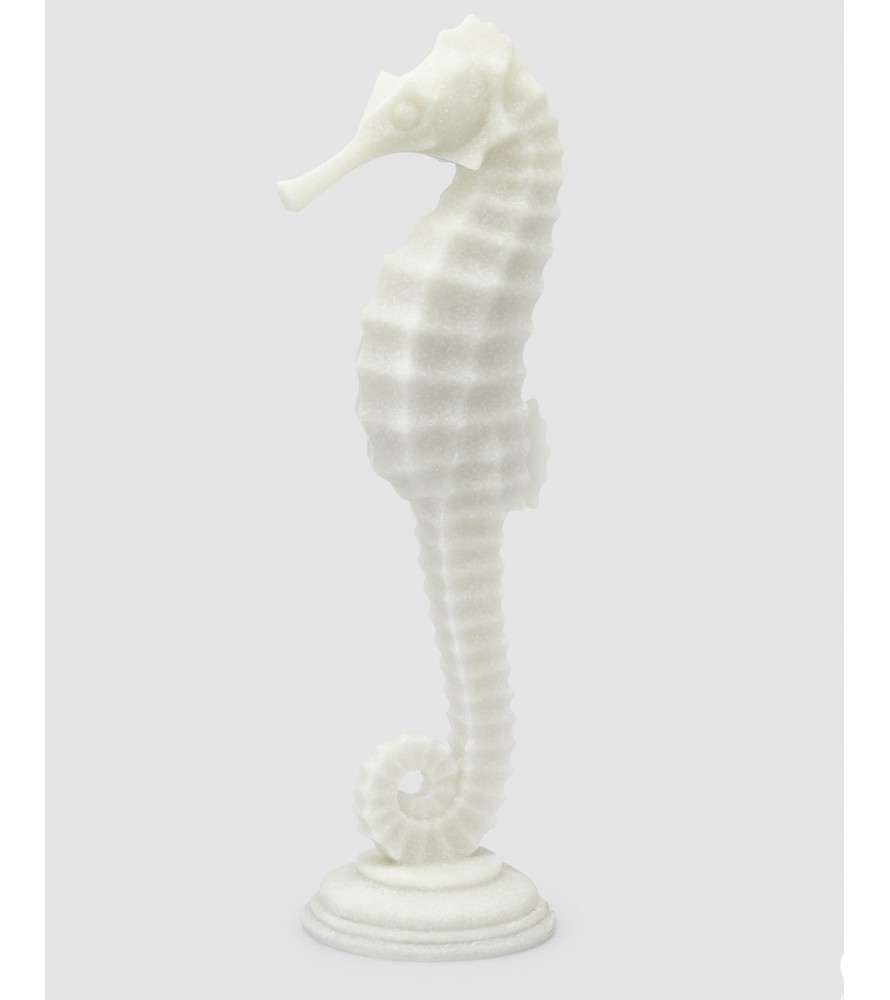 La texture superficiale con effetto marmoreo riproduce le caratteristiche scanalature e i rilievi del corpo del cavalluccio marino, conferendo un effetto realistico e decorativo.