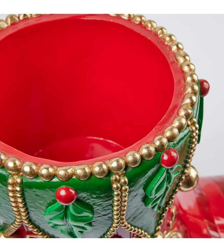 Bellissimo Vaso a forma di calza natalizia realizzata in poli-resina di alta qualità, dipinta a mano con colori brillanti.