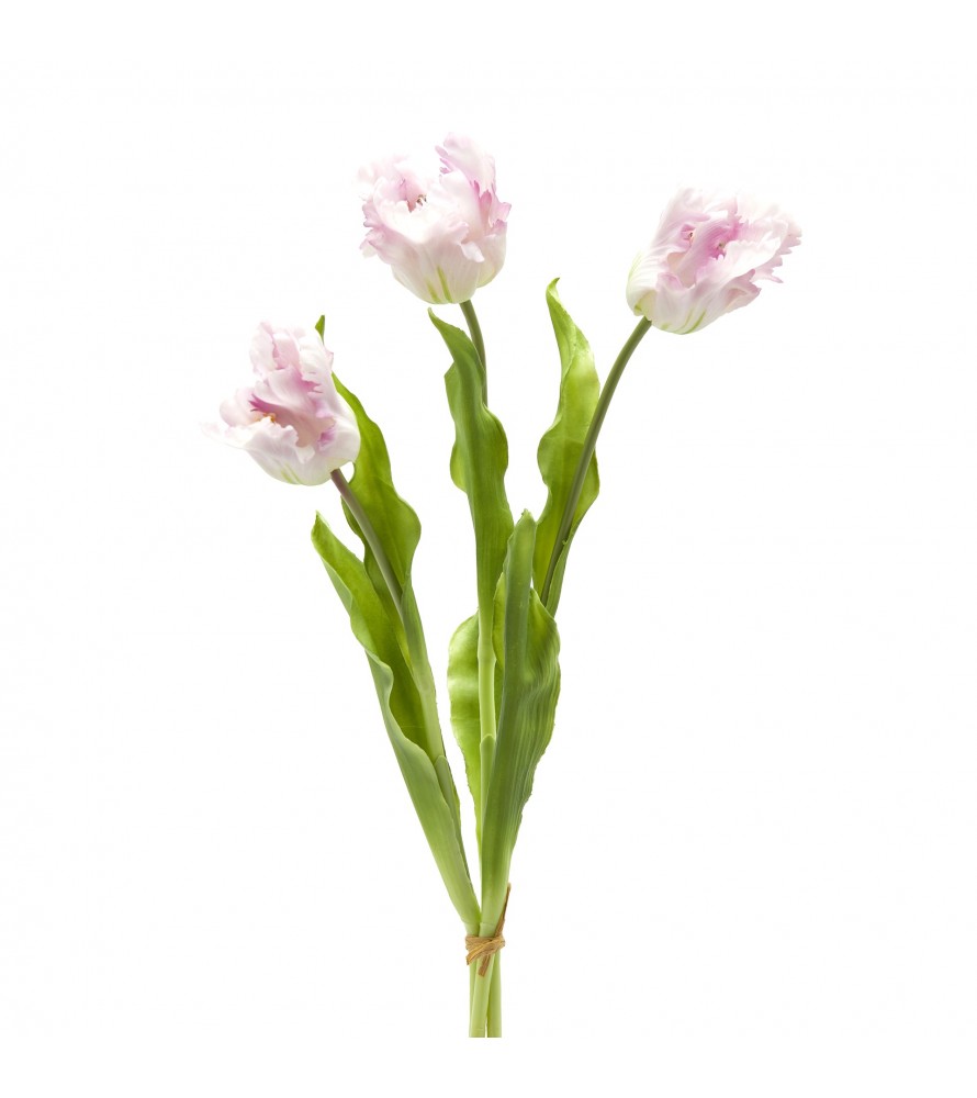 Tulipano Parrot 3 Fiori H51cm Bianco e Rosa - EDG
