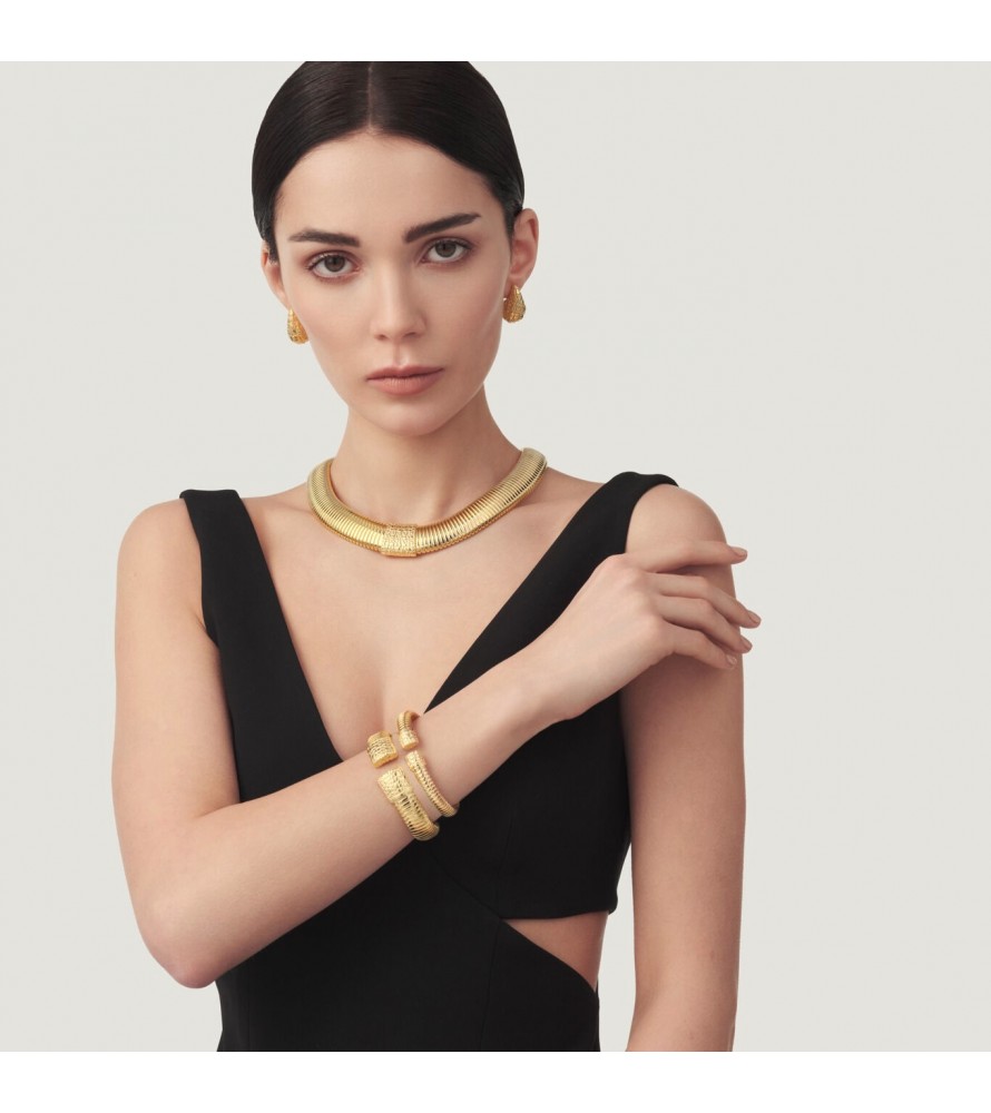 Nato dall’eleganza iconica della maglia tubogas, questo bracciale in argento dorato richiama la grande tradizione della gioielleria del Novecento.