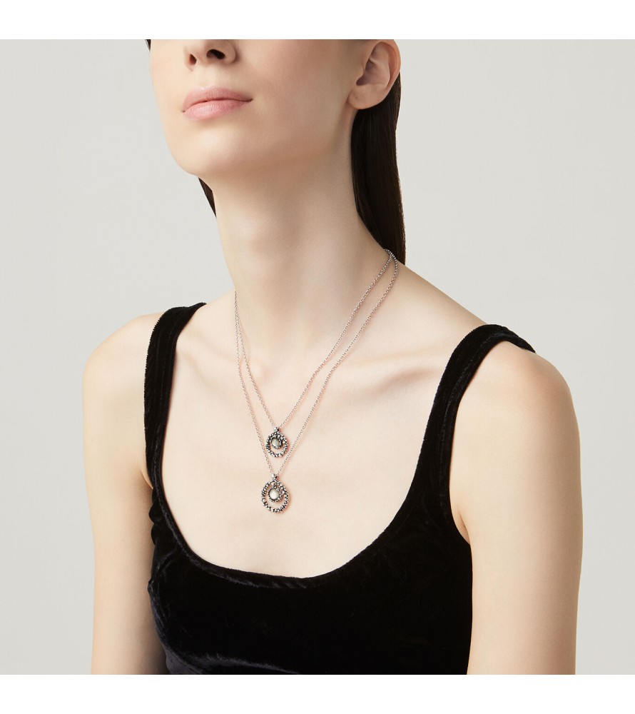 Doppia Collana in Argento 925,Madreperla e Quarzo Ialino