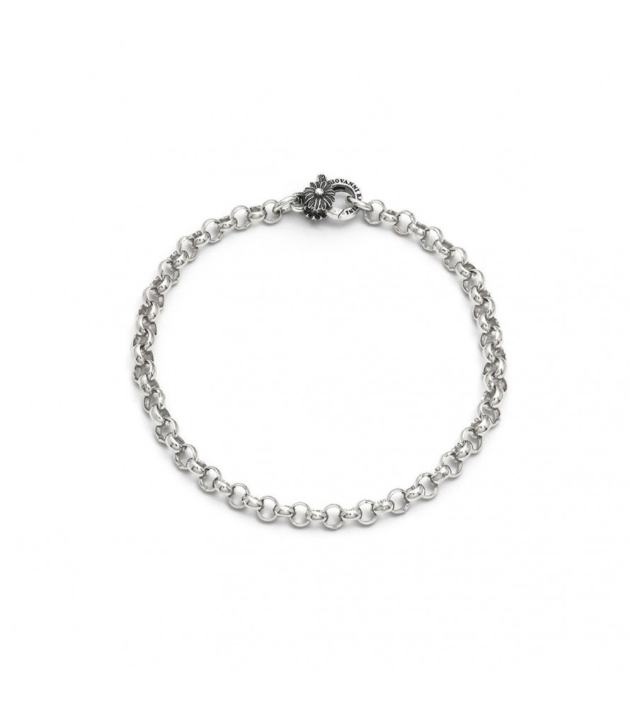 • Questo bracciale base in argento, realizzato artigianalmente con una fine catena rolò, è il punto di partenza ideale per creare un pezzo unico con i tuoi charms preferiti. La chiusura è impreziosita da un delicato decoro a forma di margherita, fuso a cera persa. Realizzato a mano in azienda.