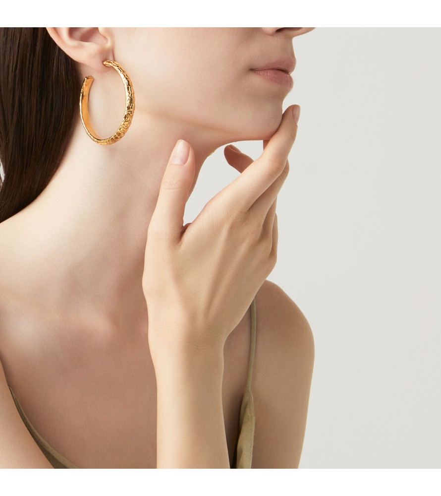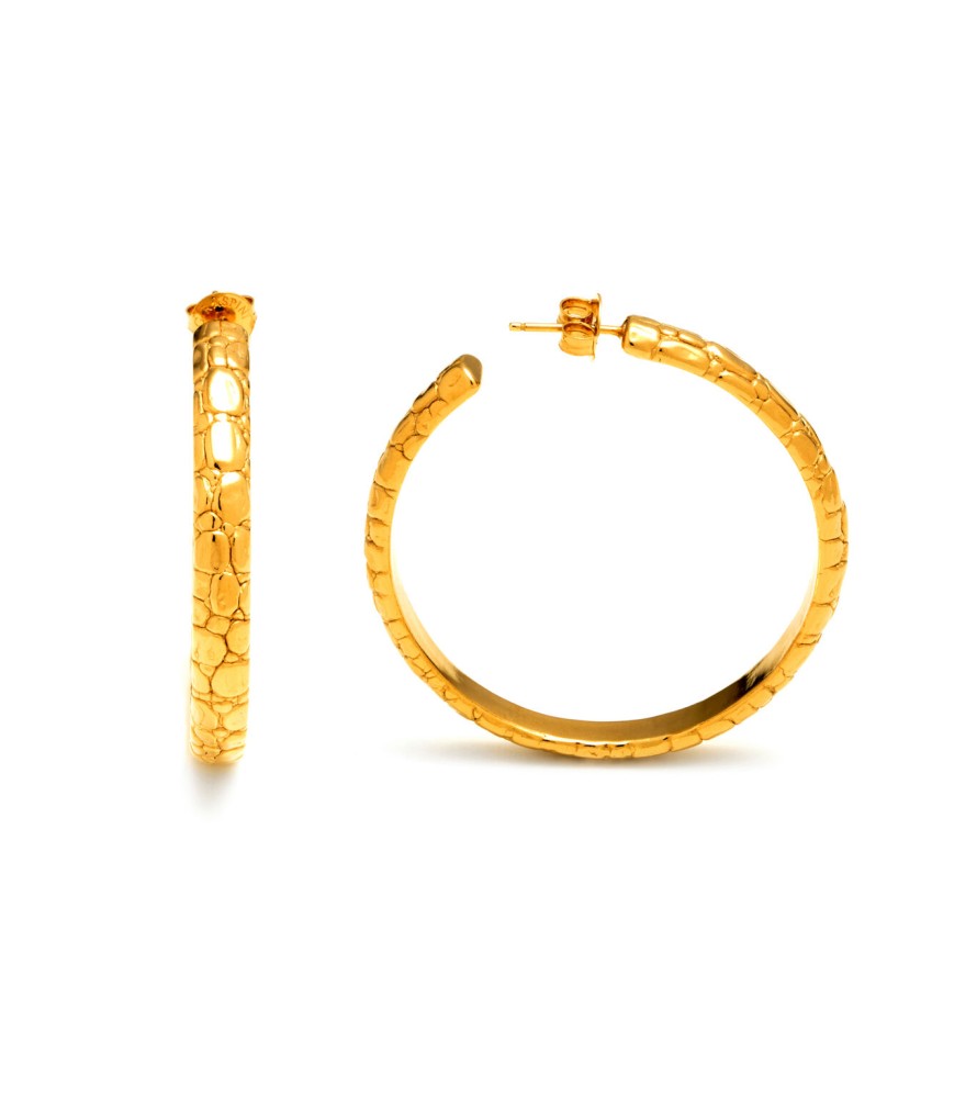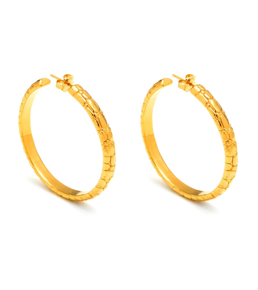 Orecchini Dorati Cerchio Moon Crocodile Grandi - Collezione Crocodile - Giovanni Raspini