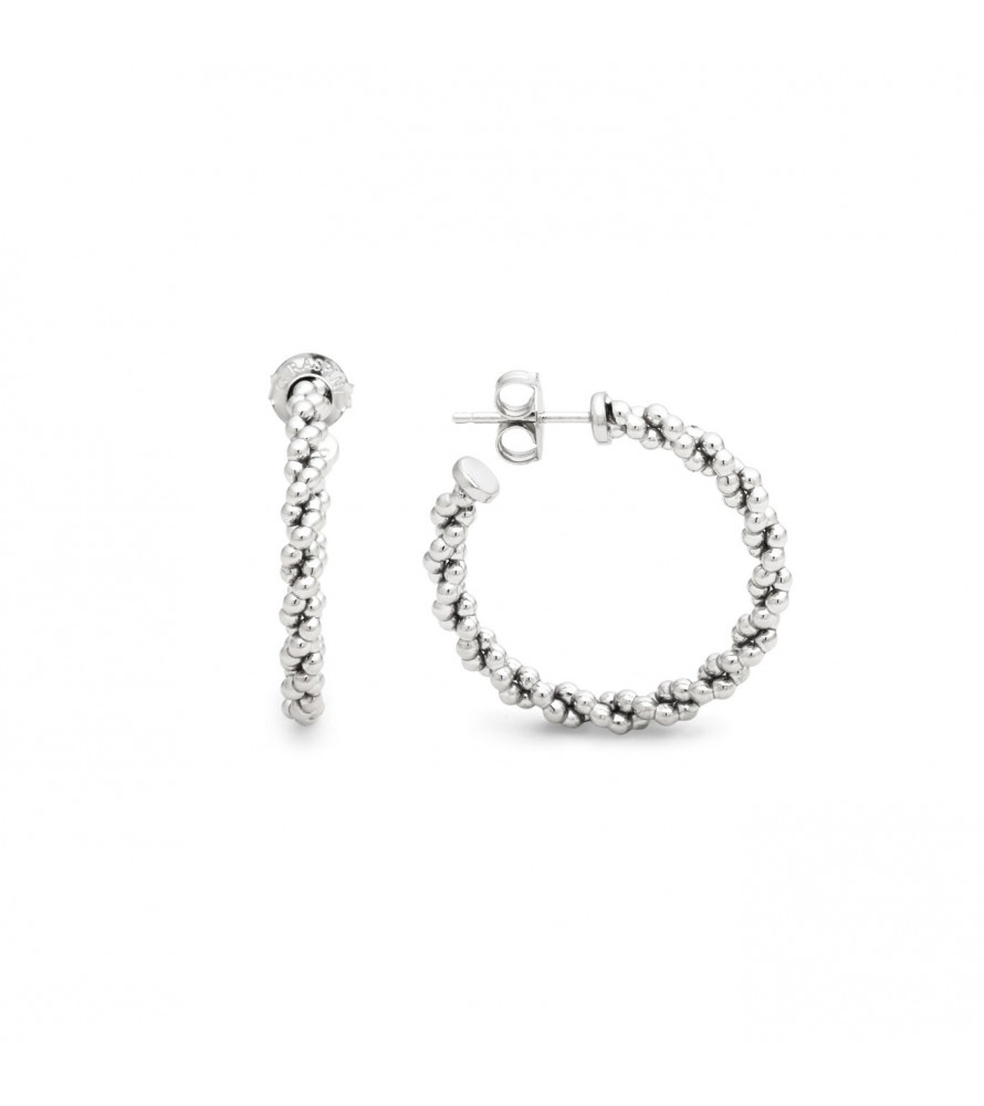 - Giovanni Raspini propone questi piccoli ed eleganti orecchini a cerchio in argento fuso a cera persa. Raffigurano una catena intrecciata, con effetto rigido. Fatti a mano in azienda per una donna che ama la bellezza dell'unicità.