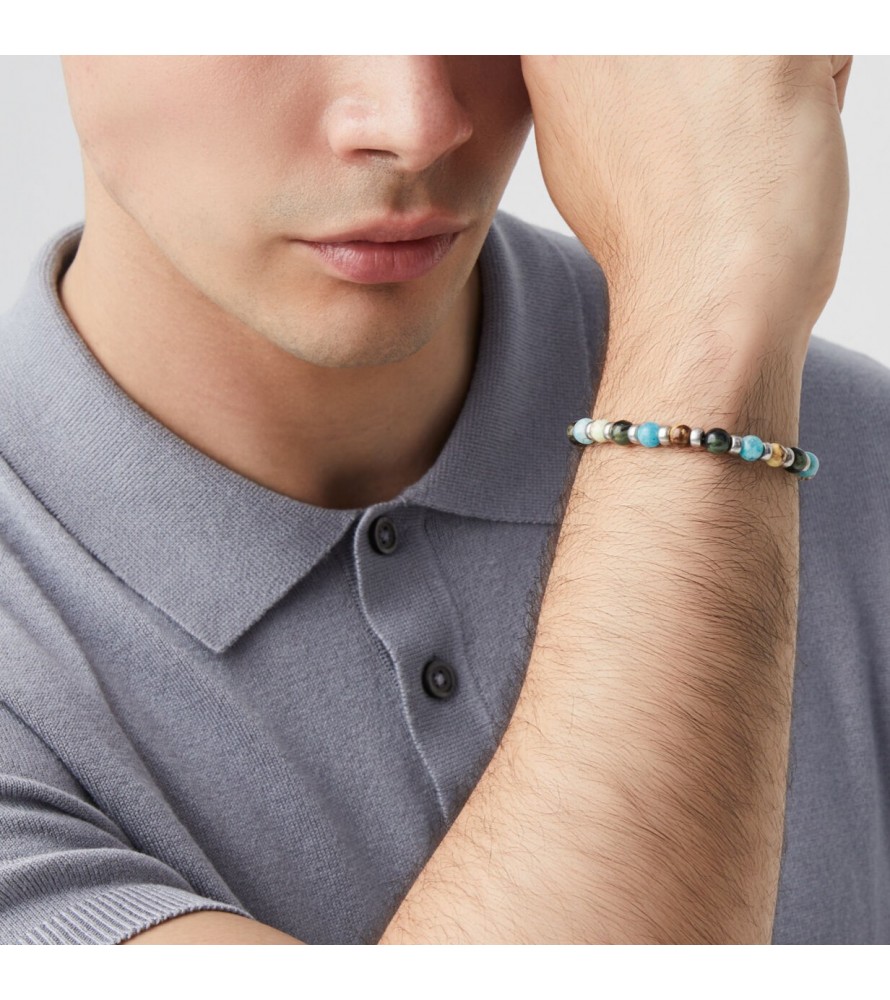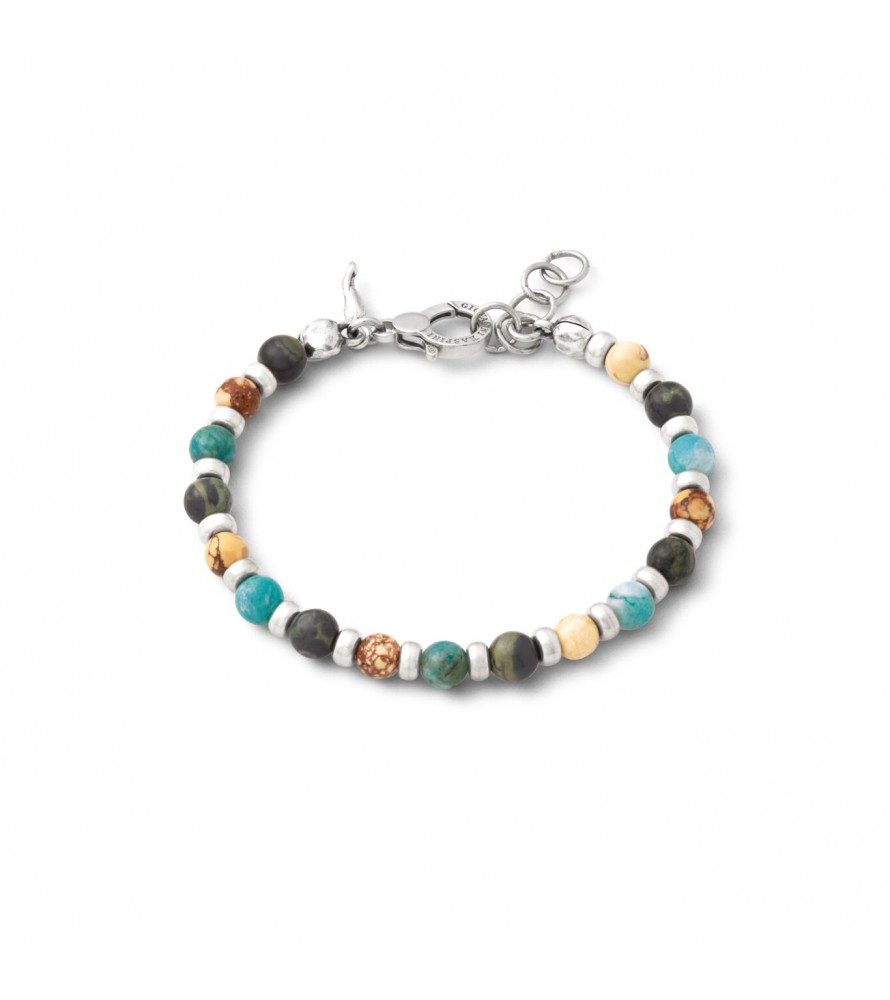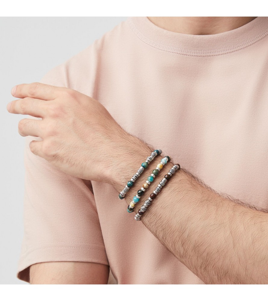 Collezione Uomo - Bracciale in Argento 925 e pietre naturali di hemimorphite, riolite e diaspro lemon.