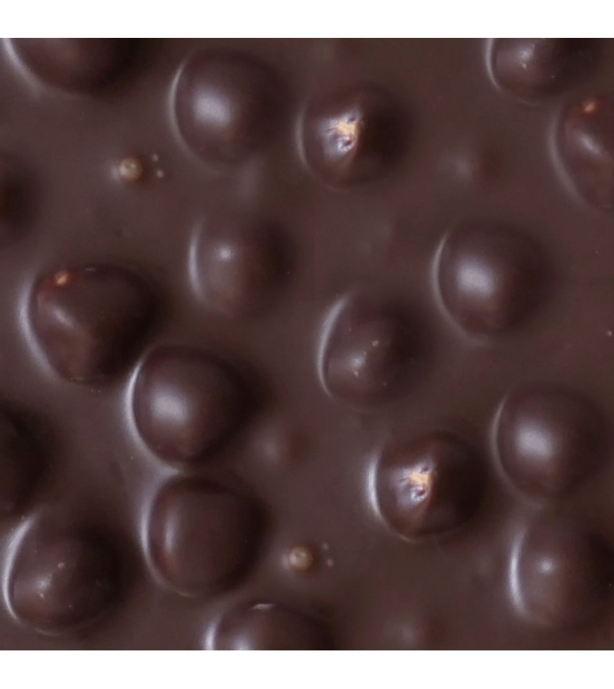 Una tavoletta di Cioccolato Extra Bitter Blend 63%, prodotto con Cacao aromatici del Sud America, impreziosito da Nocciole intere del Piemonte che gli conferiscono una croccantezza unica.