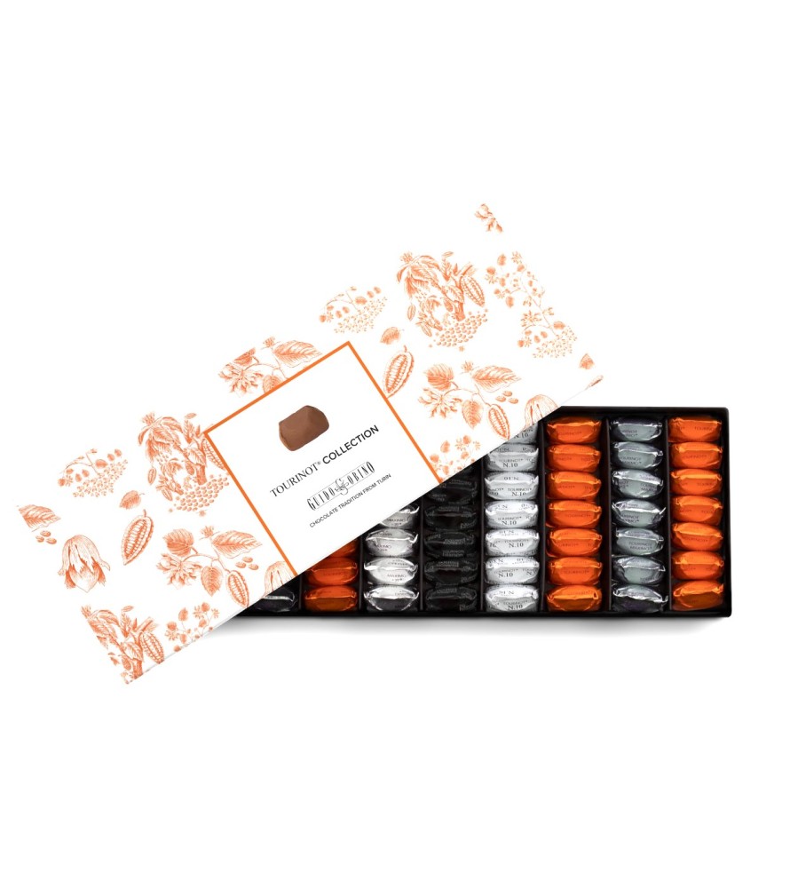 Un’elegante selezione delle 5 ricette dei famosi Tourinot di Guido Gobino, finemente disposti a mano.