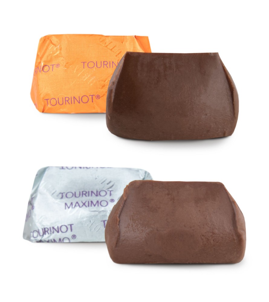 Ideale per assaggiare e condividere le cinque declinazioni del Tourinot, la versione ridotta a 5 grammi del classico Giandujotto di Torino. Classico, con Latte Inalpi della filiera alpina piemontese; Maximo, privo di latte, con intense note dei Cacao aromatici del Sud America; Maximo +39, con oltre il 39% di Nocciola Tonda Gentile Trilobata, il N.10, con il carattere del nostro Cioccolato fondente in una sorprendente morbida consistenza e l’ultimo nato, il Tourinot Bianco, un classico della tradizione piemontese prodotto con le materie prime di Sicilia: la Mandorla di Avola, l’Arancia di Noto, il Sale integrale di Paceco.
