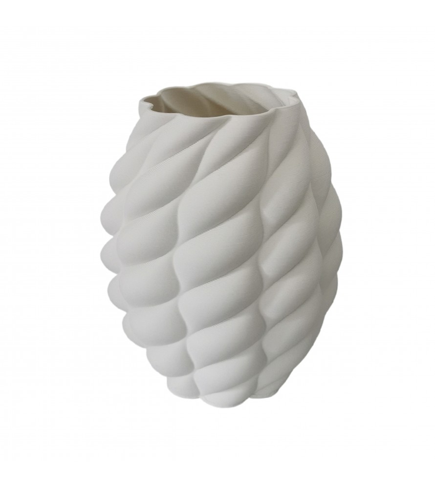 VASO FORME 3D BIANCO - PALAIS ROYAL. Un’opera d’arte contemporanea che fonde l’antica nobiltà della porcellana con le più moderne tecnologie di stampa 3D. Questo vaso si distingue per la sua superficie scultorea, caratterizzata da una trama intrecciata e organica che avvolge l'intera silhouette, creando un dinamismo visivo unico e una texture materica straordinaria.