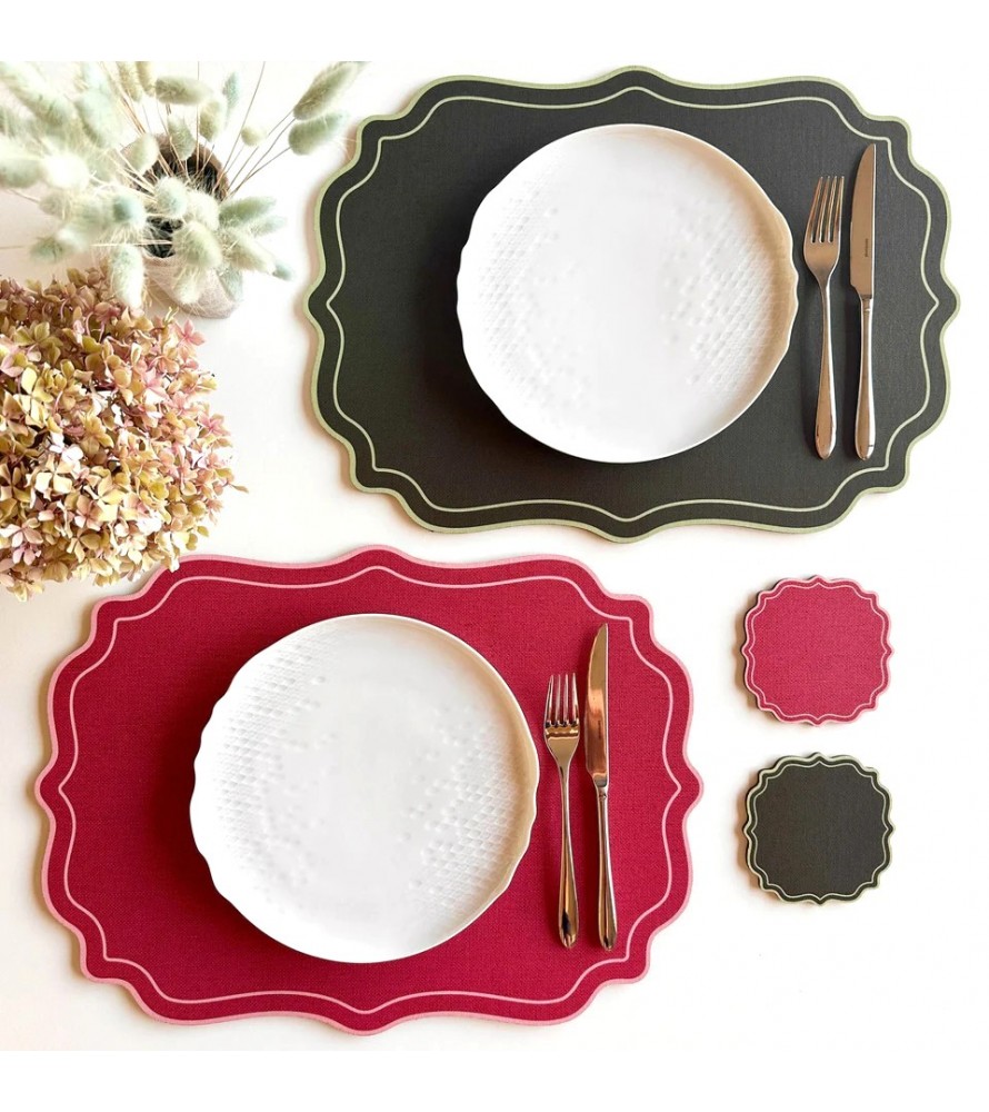 Tovaglietta Cornice Smerlata Lampone - Plumeria Home