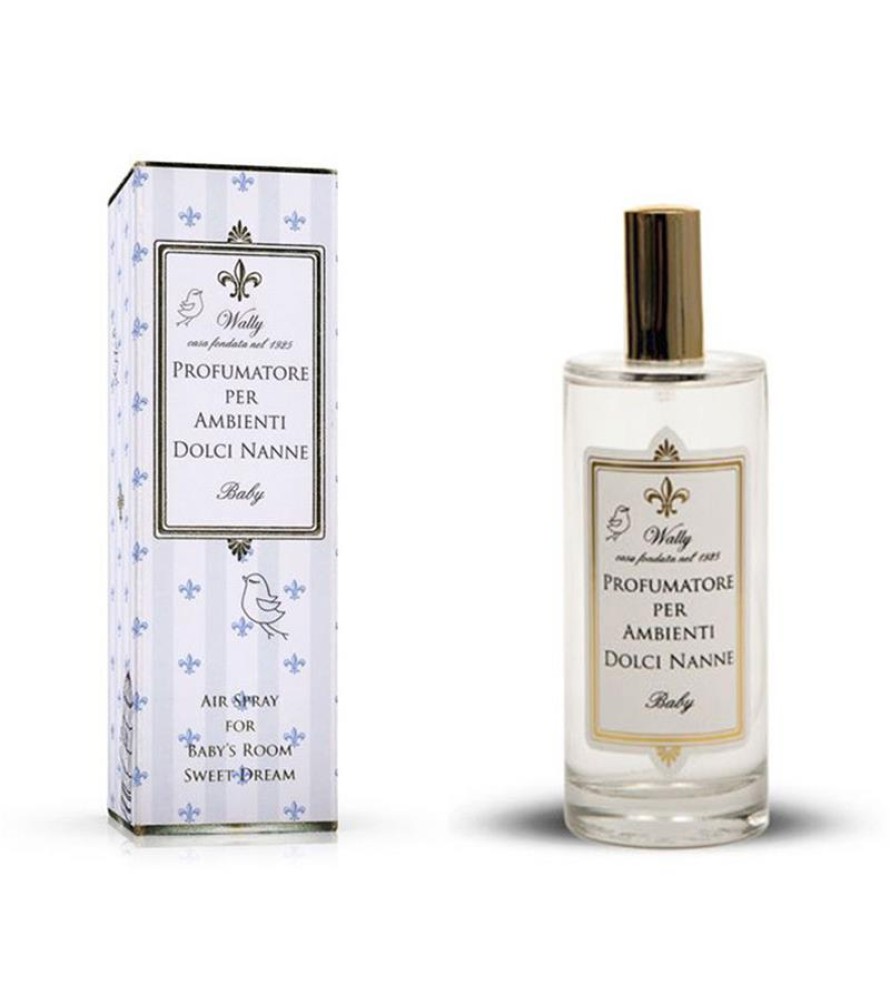 Il profumo spray nella fragranza "Dolci Nanne" di Wally 1925 esalta, con un mix di note olfattive delicate e naturali,l'atmosfera di serenità e di giocosità che la cameretta di ogni bambino dovrebbe avere.