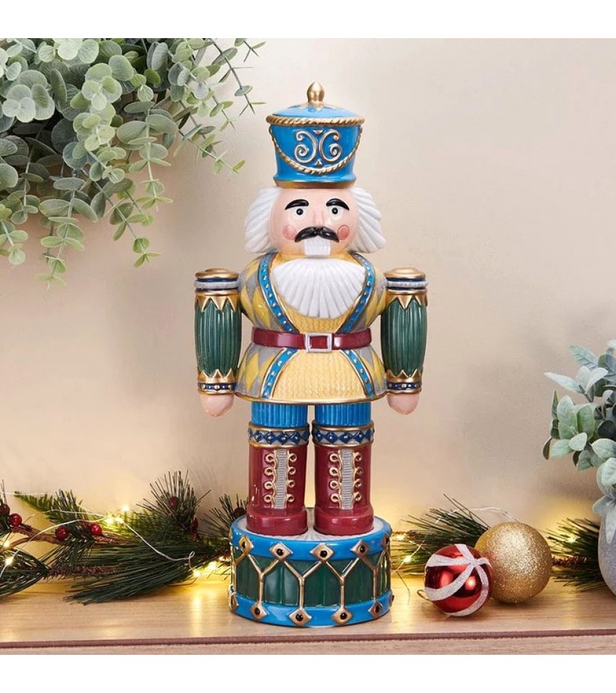 Lo Schiaccianoci Winter Whimsy Soldier si erge sull'attenti in una festa dai colori vivaci, adornata nelle tonalità del blu invernale con accenti dorati e appoggiata su una base a tamburo, aggiungerà magia alle feste per tutto il periodo natalizio.