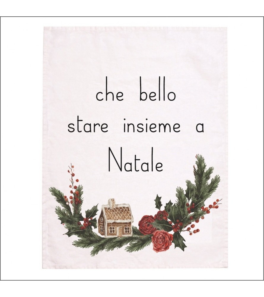 Canovaccio in lino con decoro Che bello stare insieme a Natale.