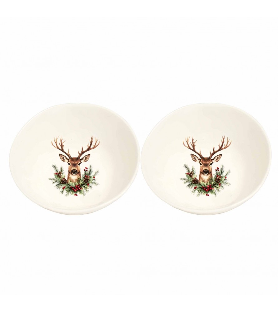 Completa il tuo servizio da tavola natalizio con il raffinato Set da 2 Piatti Fondi "Cervo Natalizio" di Simple Day.