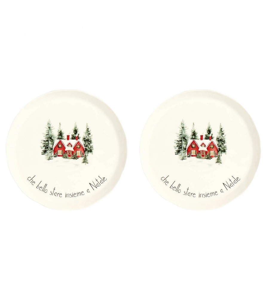 Celebra il vero spirito delle feste con il set di 2 Piatti Piani in gres "Che bello stare insieme a Natale" di Simple Day.