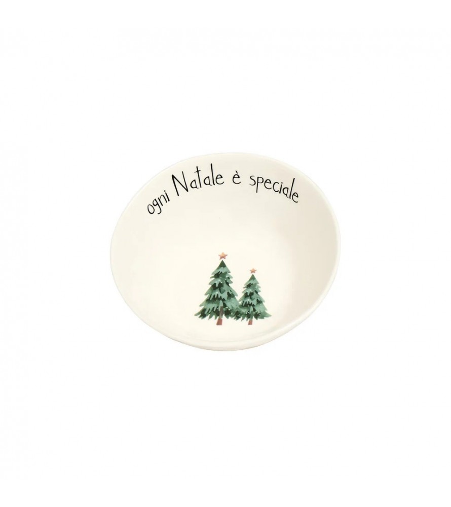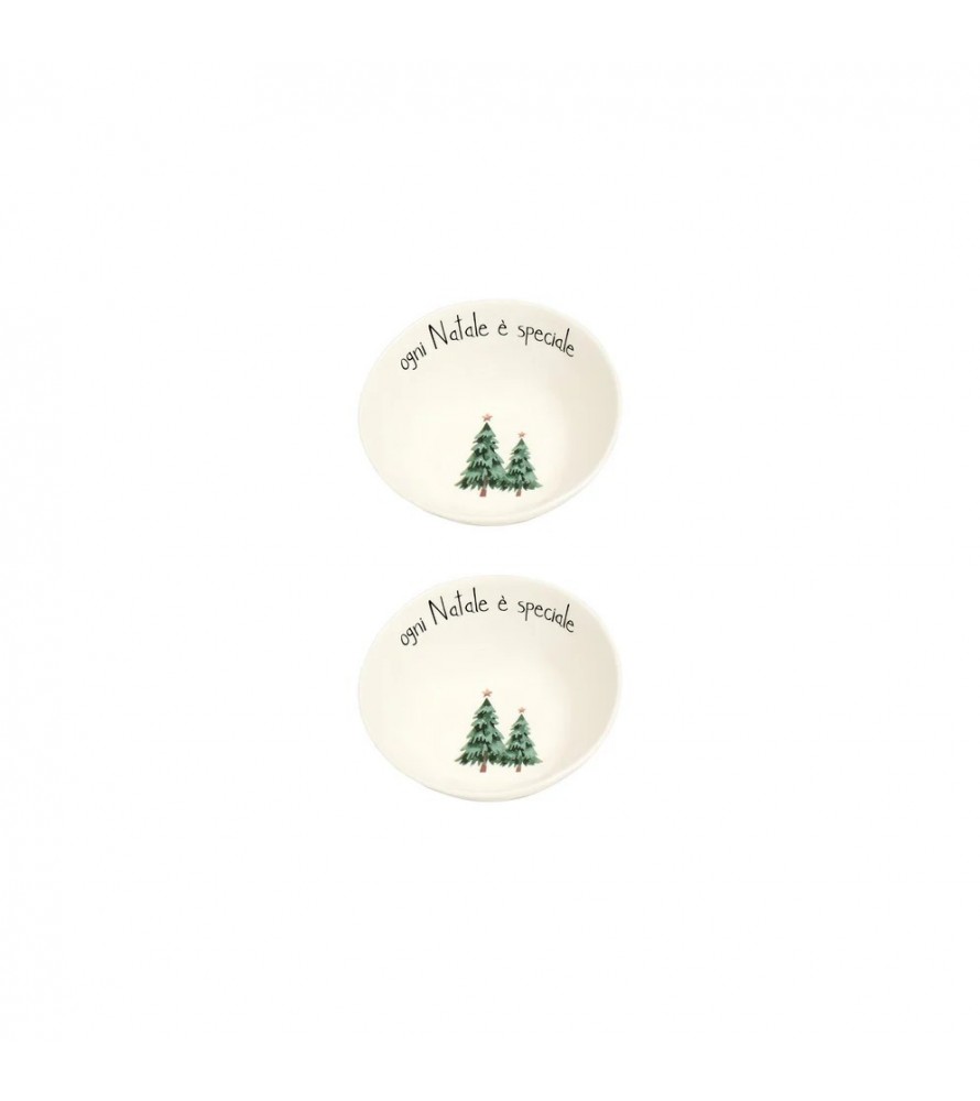 Il decoro presenta la dolce scritta "ogni Natale è speciale" in nero e due alberi di Natale stilizzati sui toni del verde, rendendole ideali per servire dessert, frutta, gelato, yogurt, o piccoli snack durante il periodo festivo.
