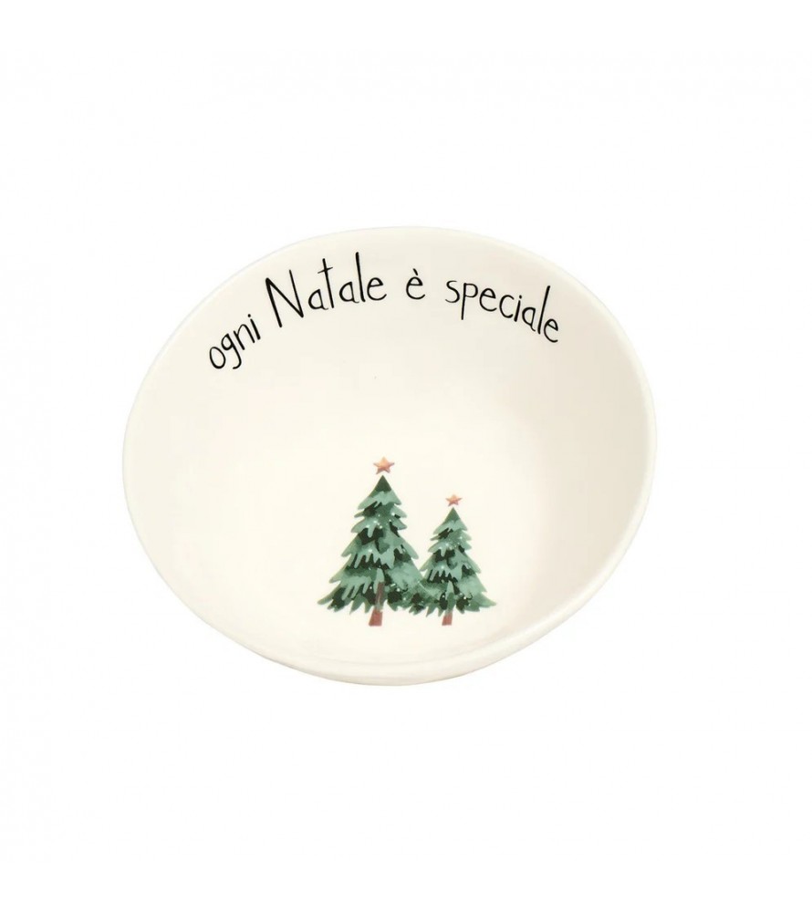 Il decoro presenta la dolce scritta "ogni Natale è speciale" in nero e due alberi di Natale stilizzati sui toni del verde, rendendole ideali per servire dessert, frutta, gelato, yogurt, o piccoli snack durante il periodo festivo.