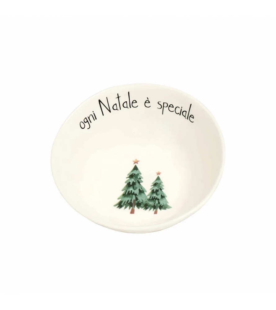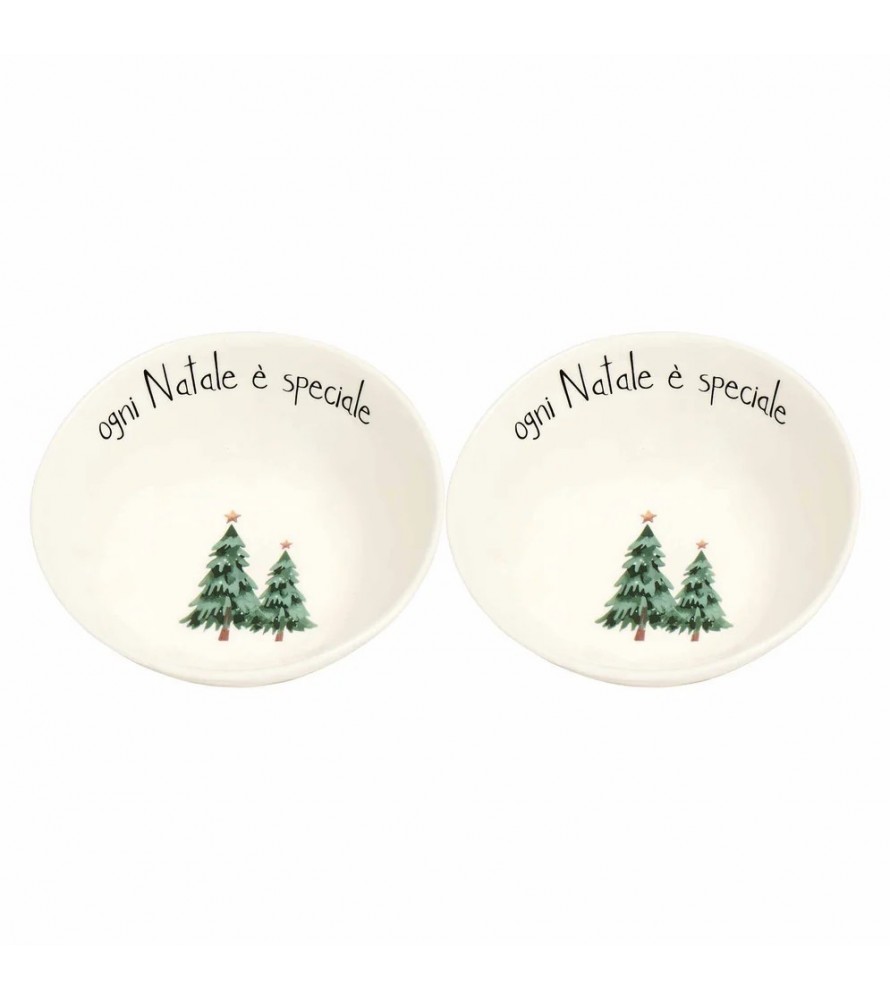 Ogni piatto presenta al centro l'adorabile decoro con i due alberi di Natale stilizzati e la scritta "ogni Natale è speciale", portando un messaggio di gioia e un tocco di design minimal-chic sulla tua tavola.