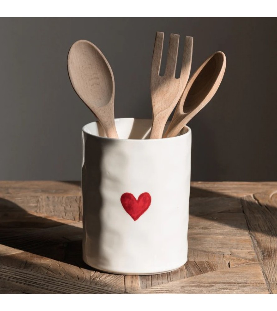 Portamestoli e posate bianco con decoro CUORE ROSSO