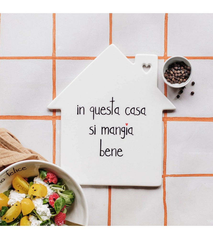 Sottopentola a forma di casa decoro IN QUESTA CASA SI MANGIA BENE.